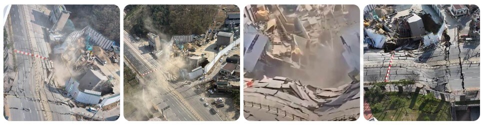 6차선 도로가 휘어지고, 공사 현장은 거대한 싱크홀에 빨려들 듯 붕괴되었습니다.