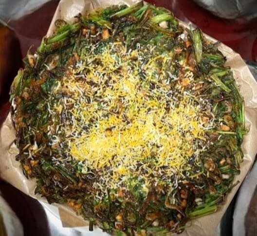 - 미나리와 오징어가 듬뿍 들어간 담백한 전.